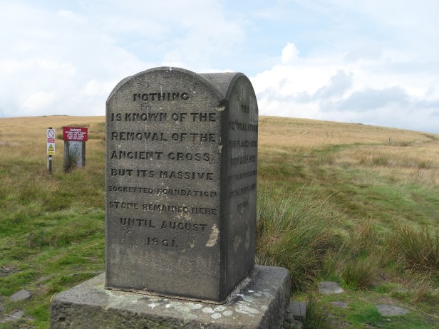 The socket was destroyed by unknown vandals in 1901. By 1902 as the monument tells us, the present stone was put in place. Monuments on ridgeways like this would have been invaluable guide posts for medieval travellers, both as a means of knowing how far you have travelled and as a way to orientate yourself in bad weather. Navigating by landmarks would be crucial in upland and moorland environments, so crosses and large prehistoric burial mounds would all have been named. The original monument was also known as Whowell’s Cross and Chatterton’s Cross.