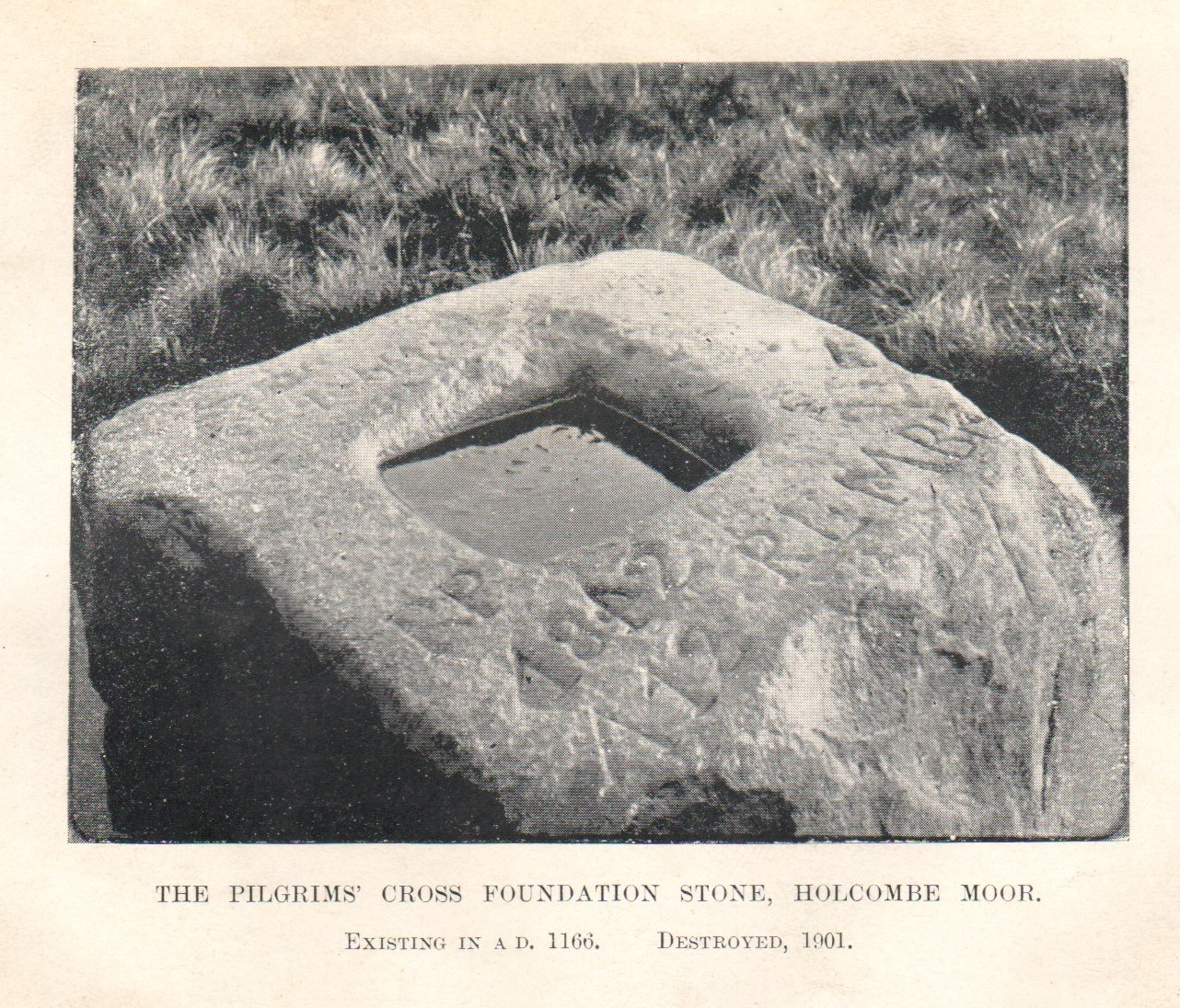 “In A.D. 1176 and in A.D. 1225 the Pilgrims Cross is named in charters of gifts of land in Holcombe forest. In A.D. 1662 King Charles II gave this manor to General Monk, Duke of Abermarle through whom it has descended to the present lord of the manor.”