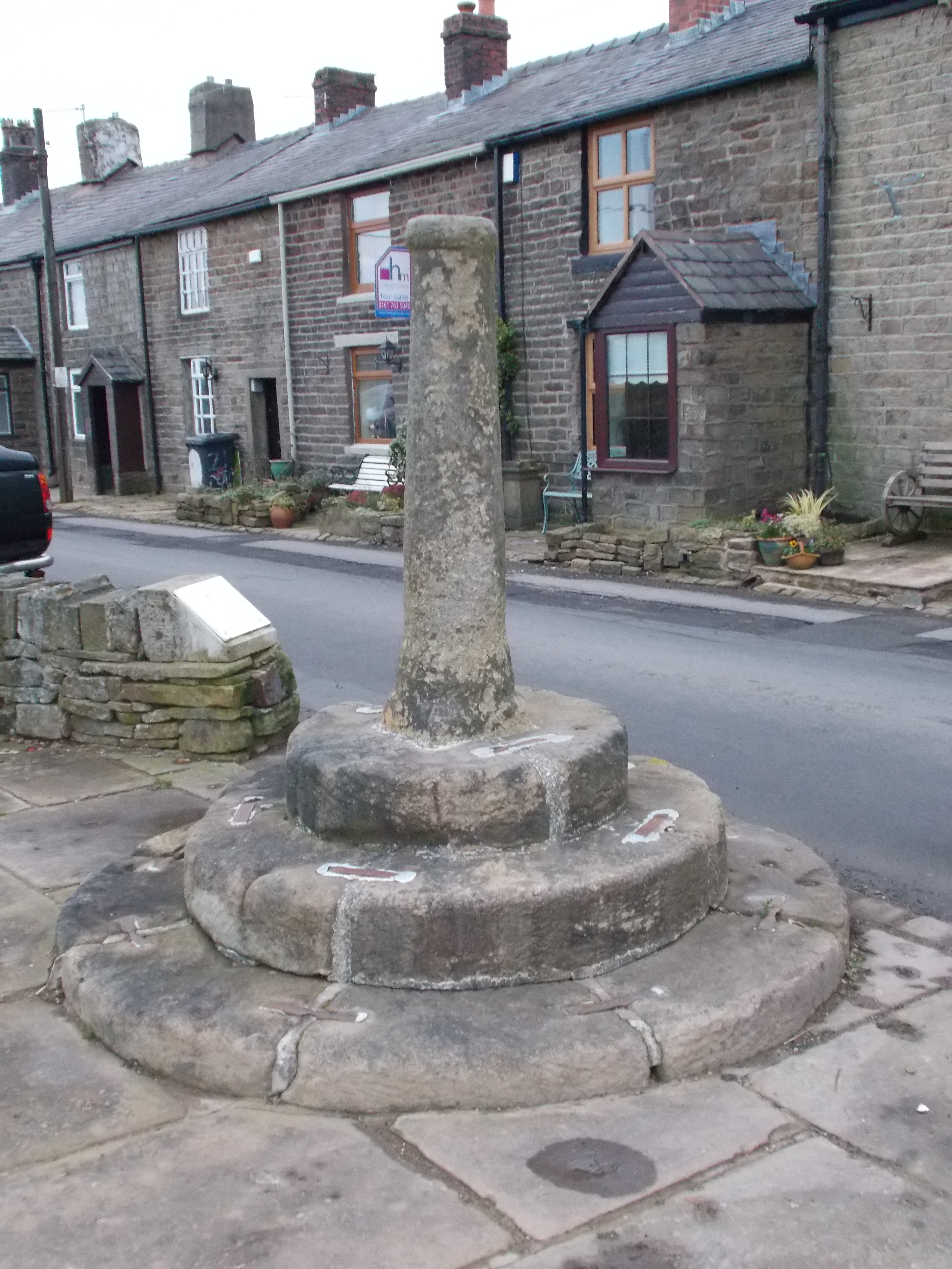 Affetside originally had two wayside crosses, marking the medieval route of Watling Street. The route itself is even older, and is based on the Roman road that links the Manchester and Ribchester Roman forts. (See our page on the Manchester fort here). English Heritage gives details of a 1542 sketch map in the records of the chancery court of the Duchy of Lancashire, which shows two crosses along the road. The most northerly of these two crosses is the place where we see the current cross shaft. Its companion was further south and on the opposite side of the road. The sketch map also shows a standing stone to the southwest of the southerly cross, on Bowstone Hill. A field called Crych Ferthlong and a brook called Crych Broke are both named after this second cross.