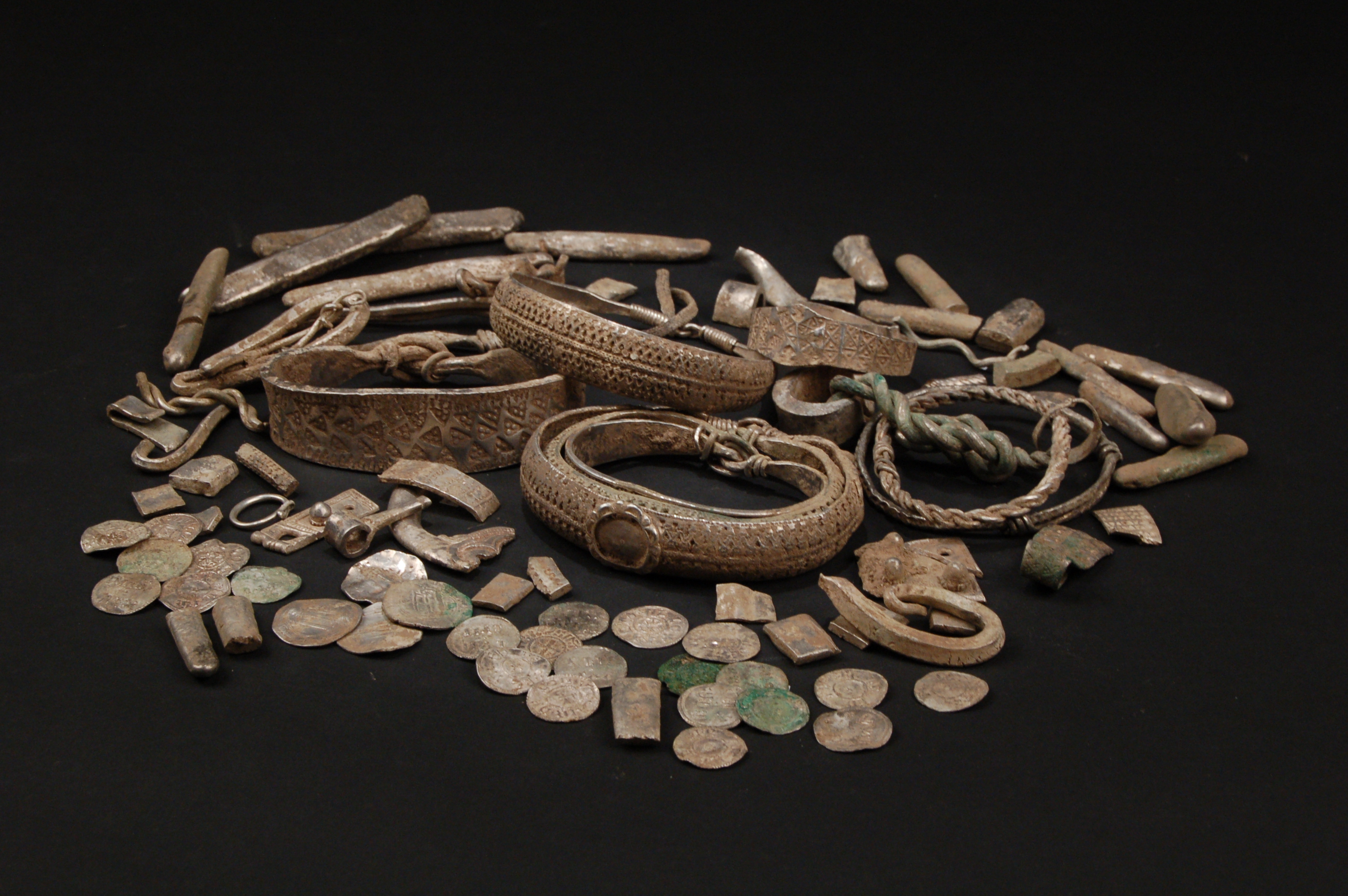 Sometime around the year 905 AD, an unknown Viking hid a collection of silver valuables. Having dug a small hole in the ground, firstly five arm rings were put in, and then placed on top of them was a lead pouch containing coins, hacksilver, rings and brooches. The hoard was covered over, but the owner never returned and it lay undiscovered for over a thousand years.