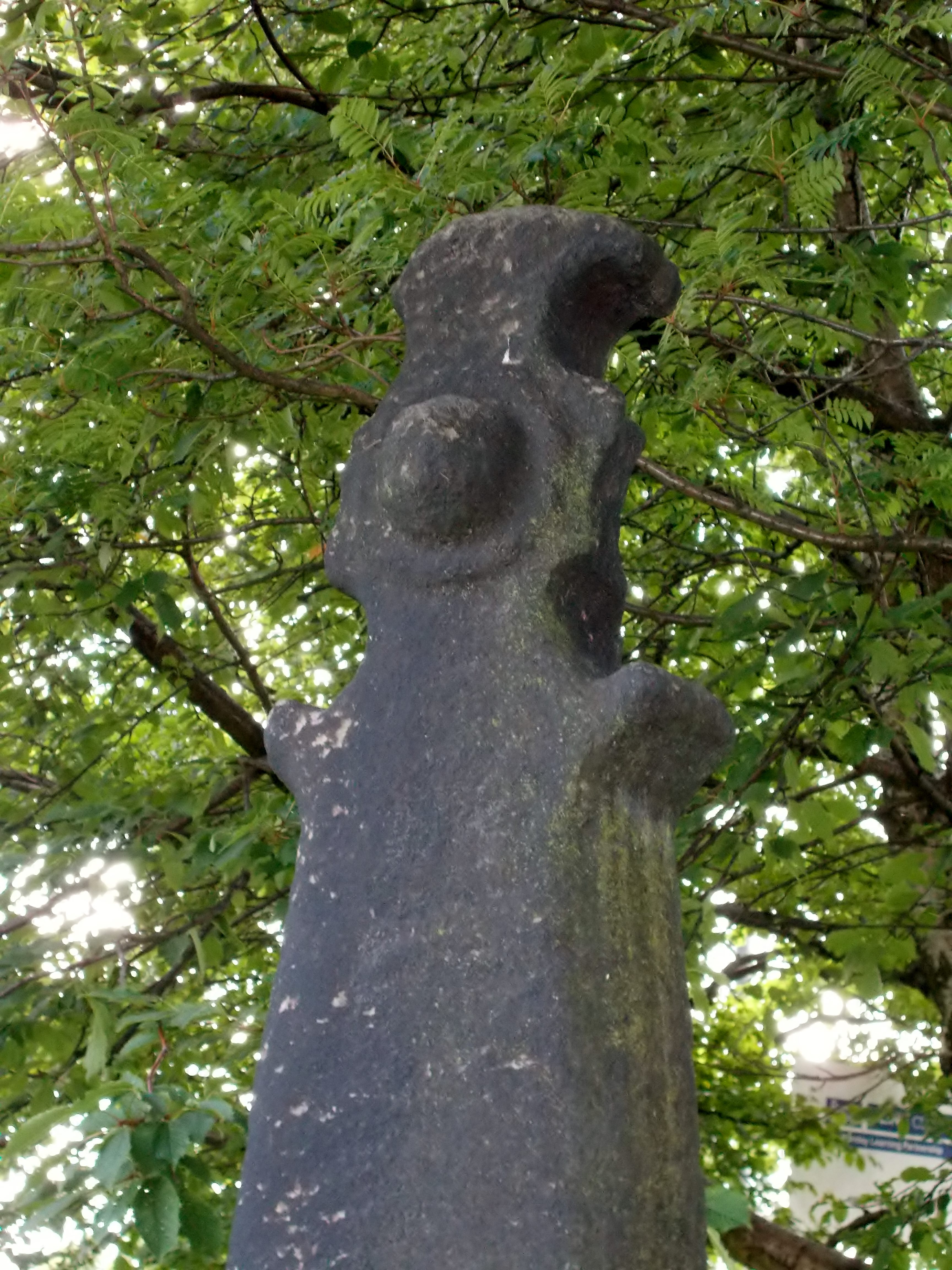 Standing at 8 feet 9 inches, it is made of millstone grit sandstone and is blackened from industrial pollution. The shaft seems to show no carving or decoration. Its left and right side arms have been broken away many years ago, but its top is intact. This has a wide ‘spoke’ that connects onto a rounded rim. Presumably the other two arms would have looked the same, resembling a ‘wheel headed cross’, but with each arm remaining unjoined at the rim. There is a central ‘boss’ (a protruding dome shape) on both sides, and on one side this is surrounded by a ring. This is a key indicator of a pre-Norman design, so the cross was probably made in the late Saxon/ Viking age. Professor Richard Bailey puts it as 11th century, a short time before the Norman conquest of 1066.