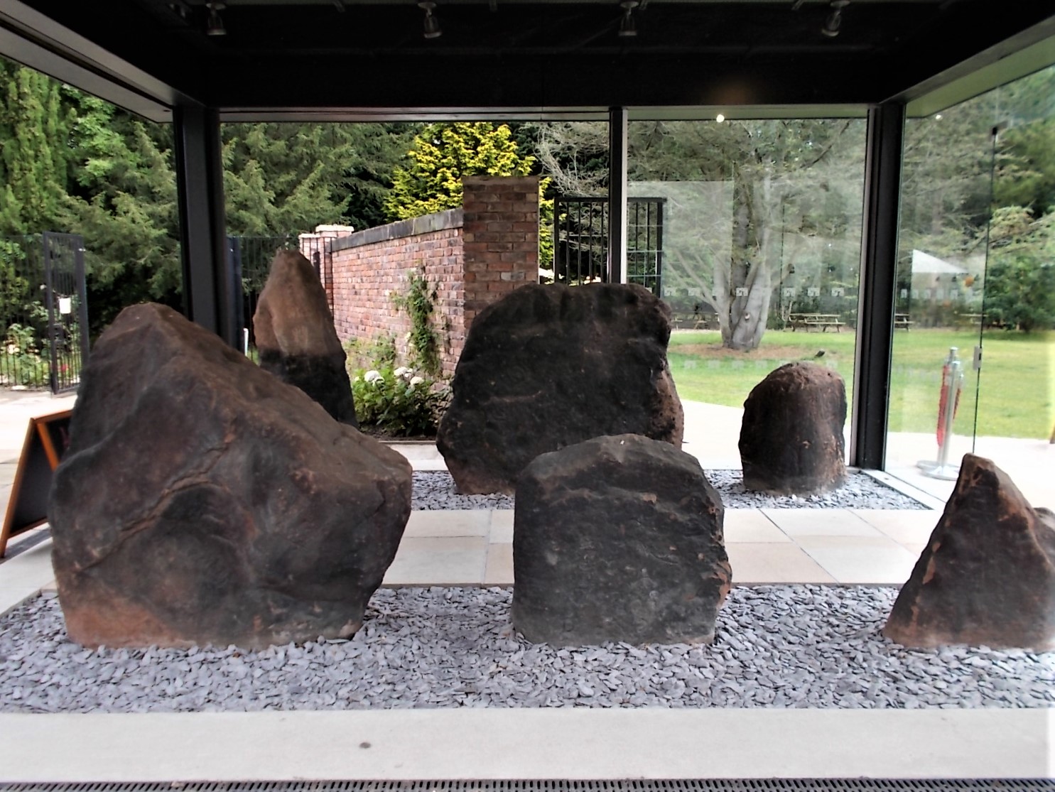 In 1964, the stones were set up in the vestibule of one of the Harthill Greenhouses in Calderstones Park. Once again they were placed in a circle. This relocation was done with the best of intentions to protect the stones. However, the alternation of extreme of heat in summer days and cold on winter nights, coupled with the humidity generated by the plants, did not help to conserve them.