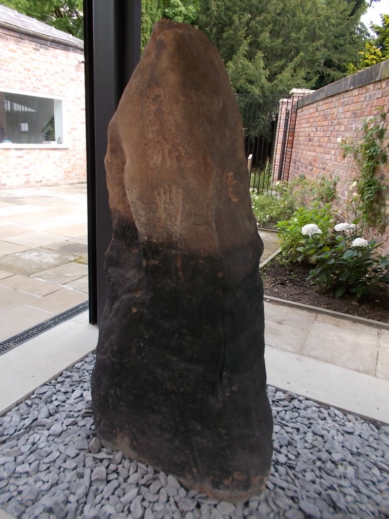 Standing in Calderstones park today, near the greenhouse, is a lone tall stone. This could have been one of the stones that was removed and set up as a rubbing post, that has been returned to the park.