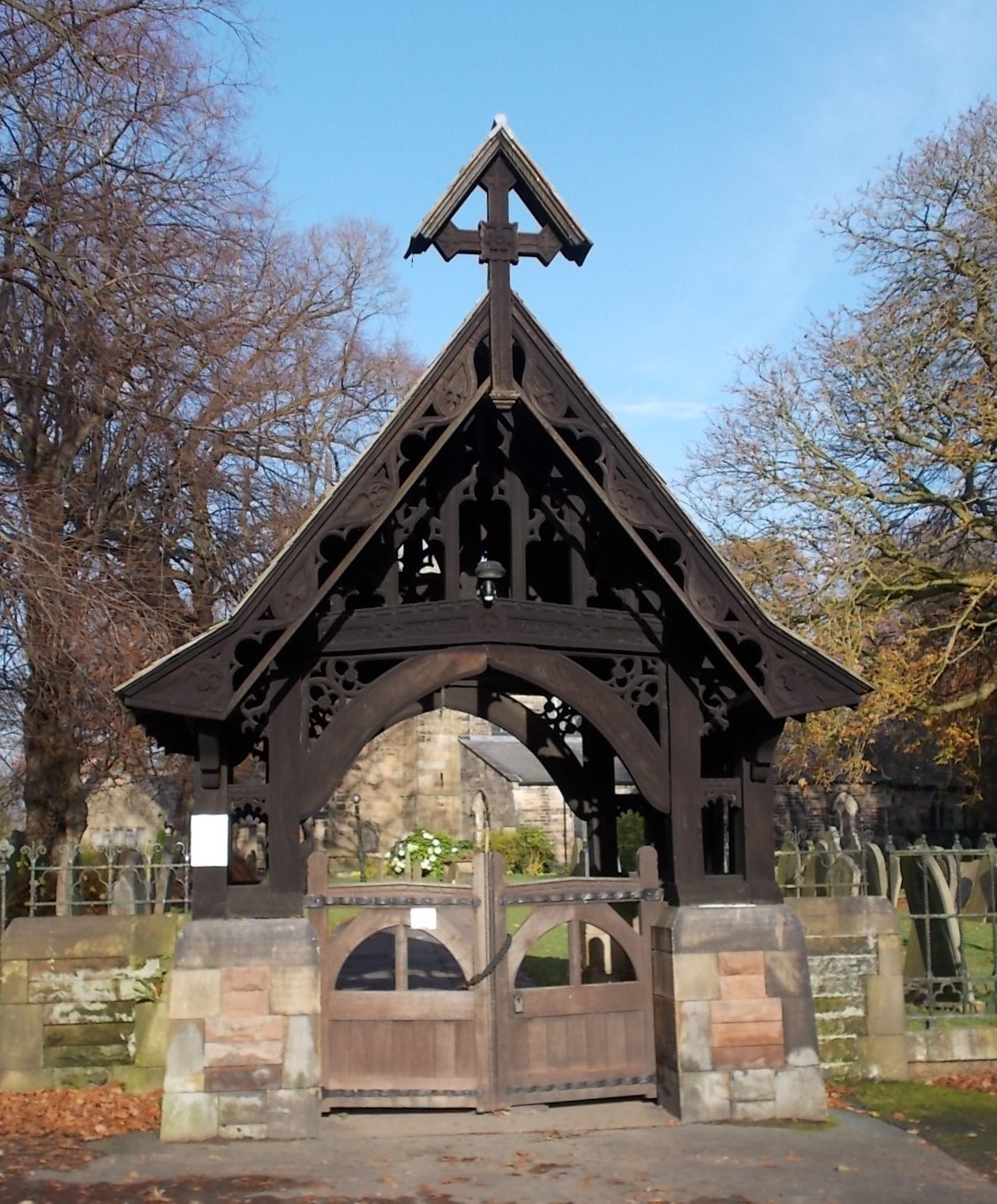 William Adam continued being a judge into his eighties. He only retired a year before he died in 1887, with his wife recently predeceasing him. Their funerals were at St Mary’s, Penwortham and ten years later their children had a lychgate built at the entrance to the churchyard . Made of English Oak, it bears a brass plaque that reads To the Glory of God and to the memory of William A Hulton of Hurst Grange parish who died March 3rd 1887 aged 83 and of Dorothy Anne his wife who died May 1st 1886 aged 81 years. This lych gate is dedicated by their children.
