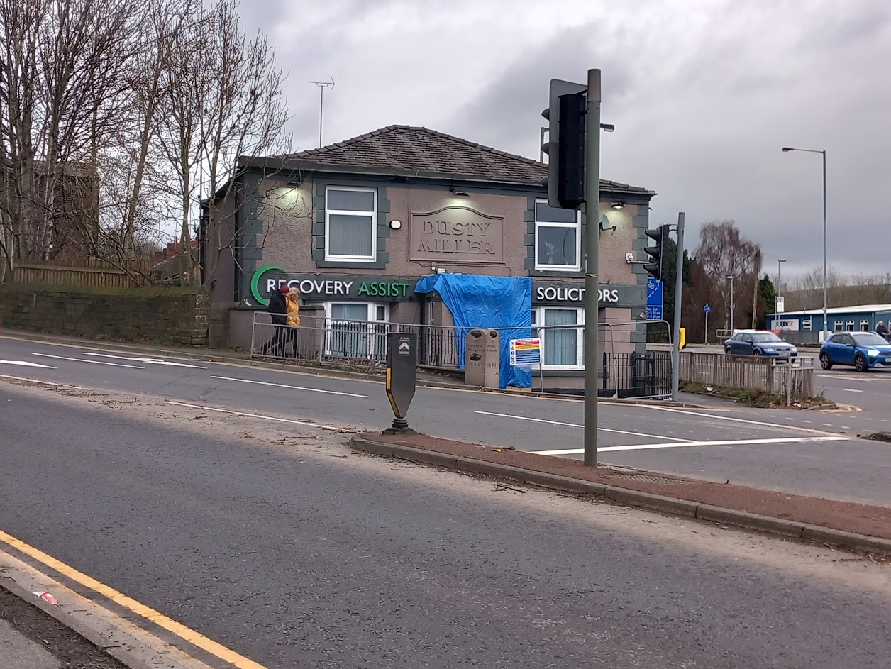 For the Woodhill direction post, park on Wike Street and head up Crostons Road street to the Dusty Miller. This is a busy junction, but there are pedestrian crossings.