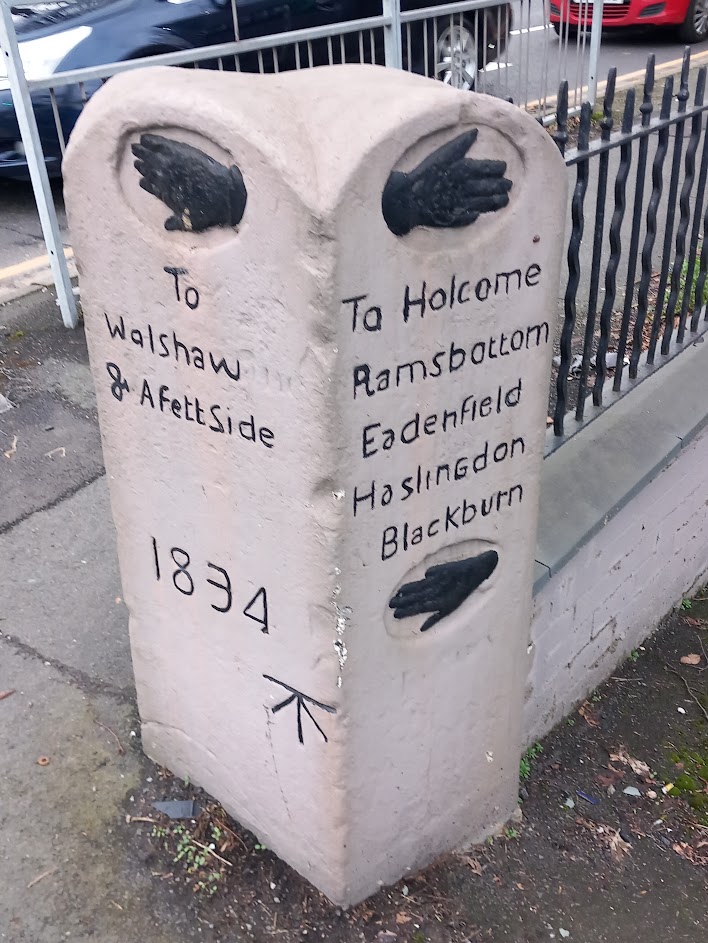 In the Woodhill and Ainsworth areas of Bury stand two rare sign posts. They are substantial stone features, with directions to nearby towns carved into them. Both feature ‘hands’ motioning in the direction to take, but interestingly neither show a mileage for any of the destinations.
