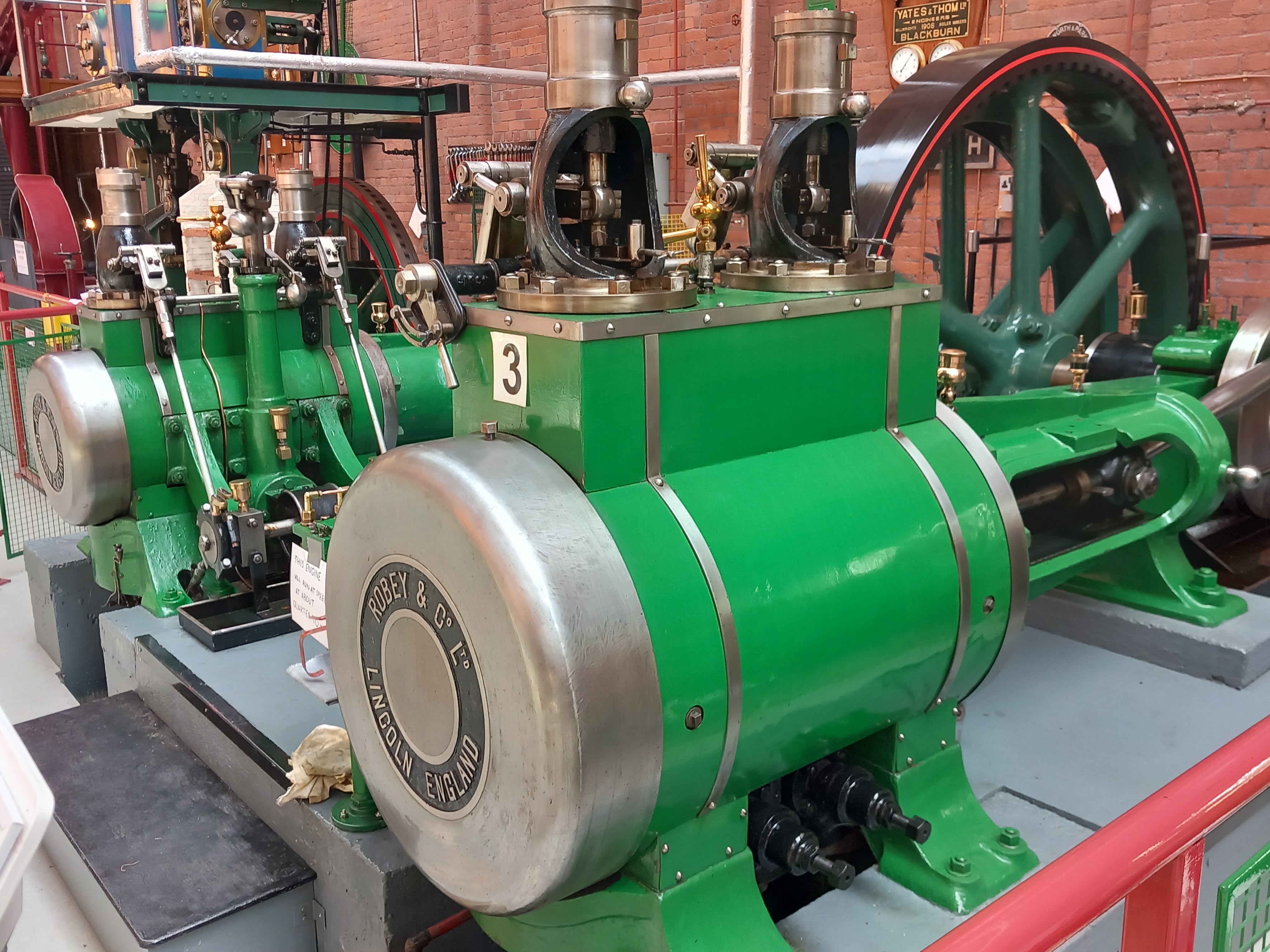 Visitors to the Bolton Steam Museum today may assume that these engines have been removed, intact and fully functional, from the mills where they once stood, to be displayed on the exhibition hall floor. Nothing could be further from the truth. They have been hard won, thanks to the dogged determination of the members of the Northern Mill Engine Society. Many have been extracted on very tight schedules, often under terrible conditions from mills that were slated for demolition. Some of them have taken years to repair and re-assemble. Today the steam engines work as well as they did when they were installed in the mills, gleaming, well-oiled and well-maintained. Visitors to the museum will see decades of dedicated work.