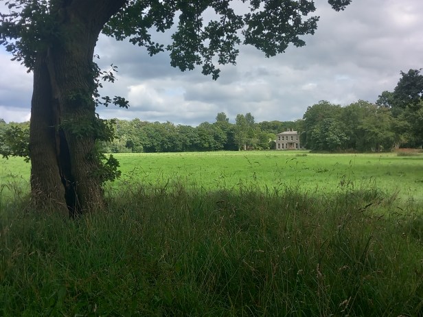 With the view of Brindle Lodge before you, notice how the footpath is in a dip. The parkland fields look landscaped here, perhaps hiding from sight the farm buildings from the hall. However, the view from the hall would be a pastoral one of cattle grazing in the meadows, and then looking over to the Bowland Fells in the distance.