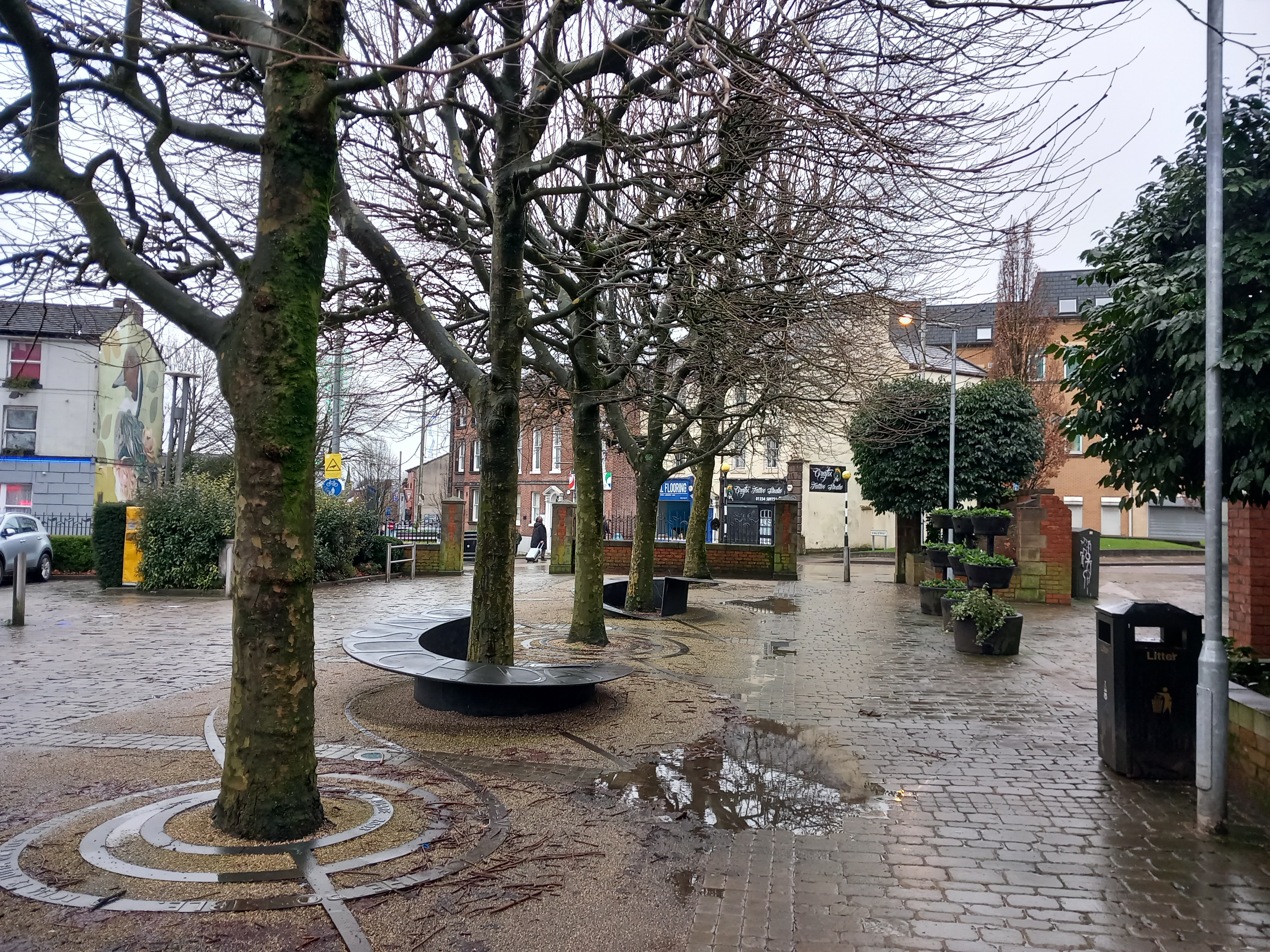 The poem has been cast in bronze spirals that encircle a row of Plane trees. This was done by sculptor Stephen Broadbent, who is known in Lancashire for his stunning Mythic Coast sculpture work at Cleveleys. At some points the verse rests in the ground of the square, while at others it lifts above the surface to form benches around the trees. Stephen’s studio at Chester also designed the railings around the site which contain bronze and glass motifs of fish, a nod to the site’s earliest use.
