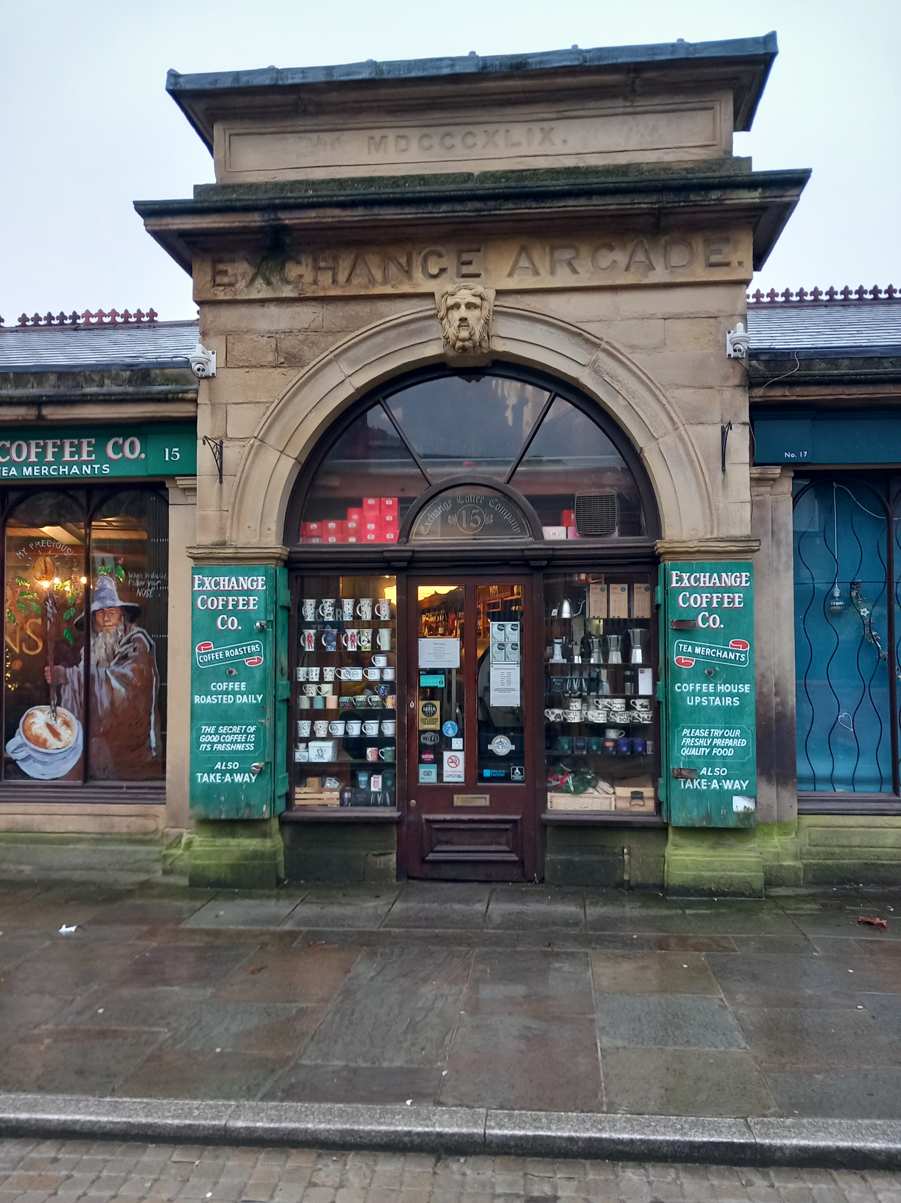 The Exchange Buildings house a variety of shops, including Exchange Coffee which is an especially popular cafe.
