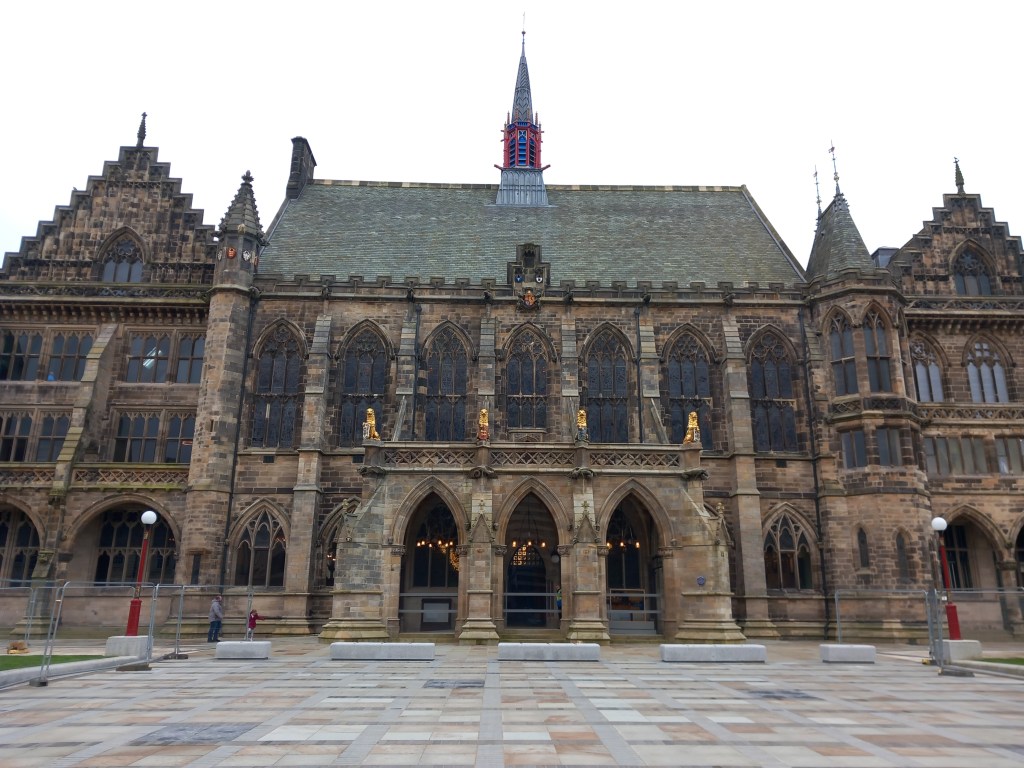 Following a competition in 1864, Leeds-based architect William Crossland was selected to complete the design of the town hall. He was a relative unknown; his only previous major work was the Founders Building at Royal Holloway College in London.