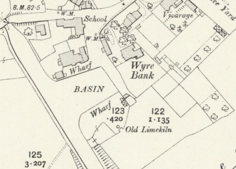With the coming of the Lancaster Canal in the early 1800s the barn may have been used for the storage for goods being carried by narrowboat. On the map below, the words ‘canal wharf’ can clearly be seen on the opposite sides of the Garstang Basin, and the building in its present form can be made out, as can the smaller stone built building that still stands alongside it.