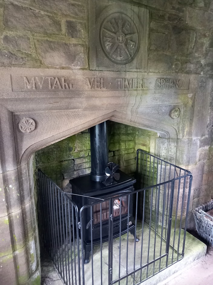 A large entrance door opened onto the ground floor. Above this were two rooms which housed ornamental doves and pigeons. The top floor was used by Ellen as a sitting room. Here she would work on her sewing, or play her musical instruments. To keep her warm, a fireplace was installed that can still be seen today. Above it is a circular wheel, with the initials ‘WHEEL’. This stands for William Hesketh and Elizabeth Ellen Lever. The Latin motto beneath reads MUTARE VEL TIMERE SPERNO which translates as “I spurn the fear to change”.