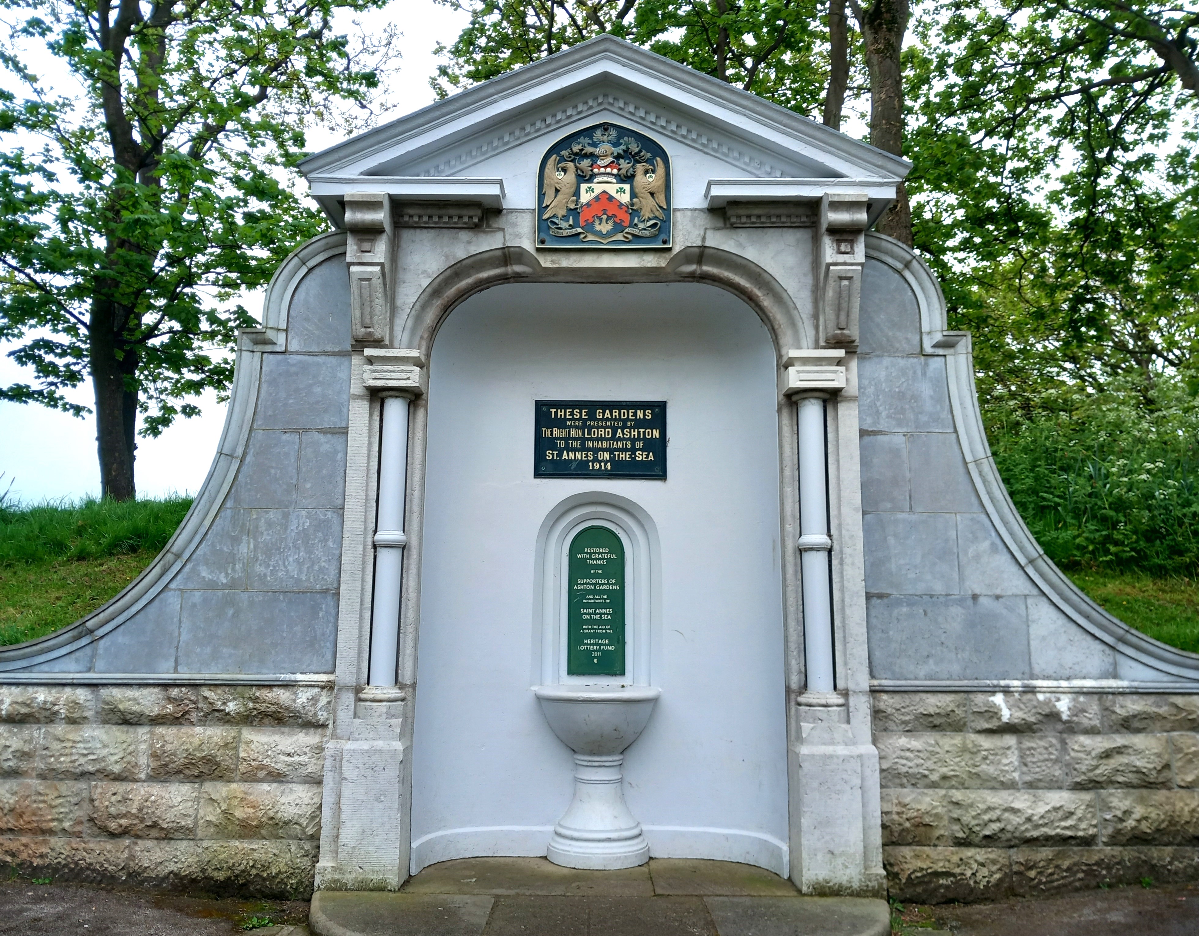 A further gift from him to the council of £10,000 meant that the gardens, now renamed Ashton Gardens in his honour, could be redesigned. The bid was put out to competitive tender. It was won by Fred Harrison, a resident of St Annes, whose firm was based in Manchester. Despite the outbreak of the First World War, work began in 1914 and concluded two years later. Pulham and Sons from London created a Rose Garden with some 6000 plants, and a Circular Garden. They remodelled the lake to produce a Rock and Water Garden which took more than 500 tons of limestone rock from Grange over Sands. A small waterfall and cascade was included in the design.