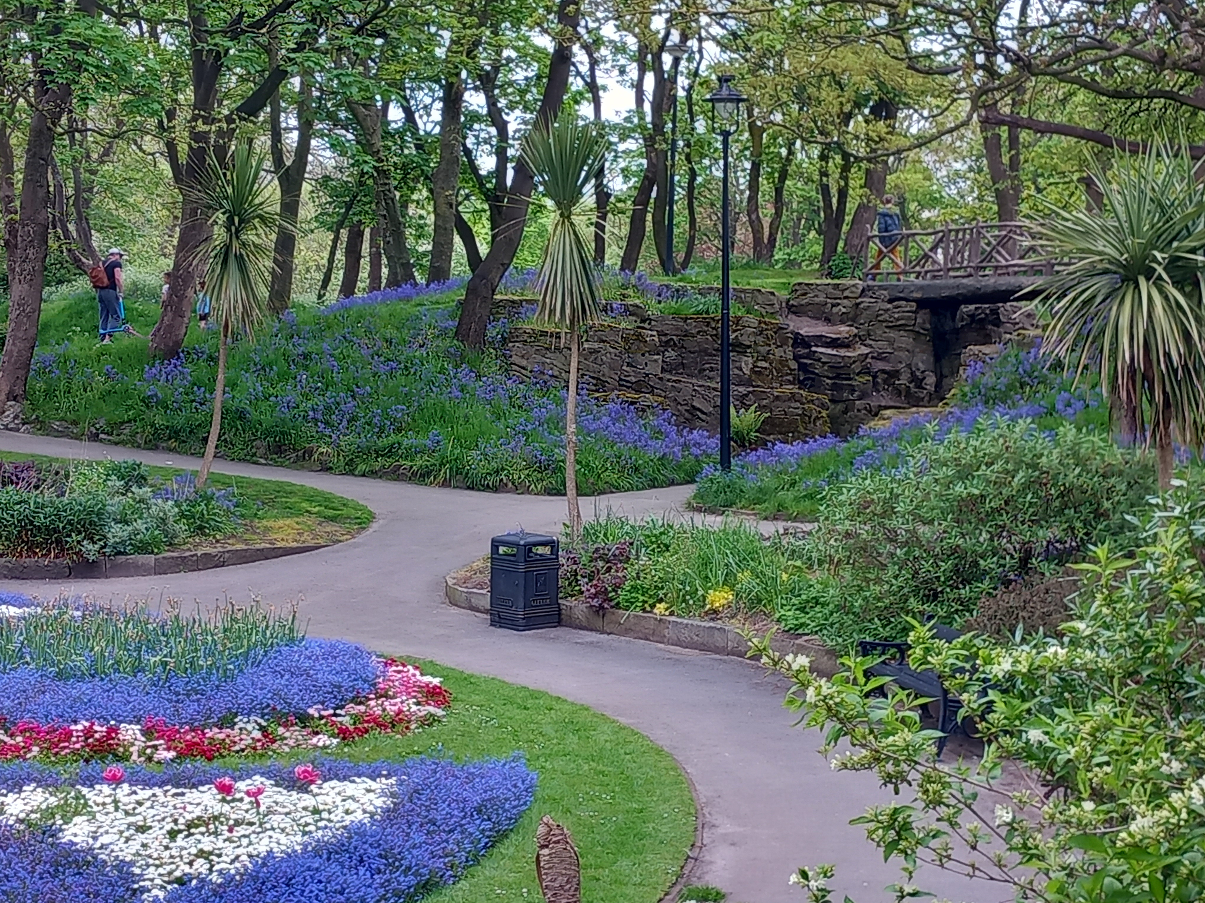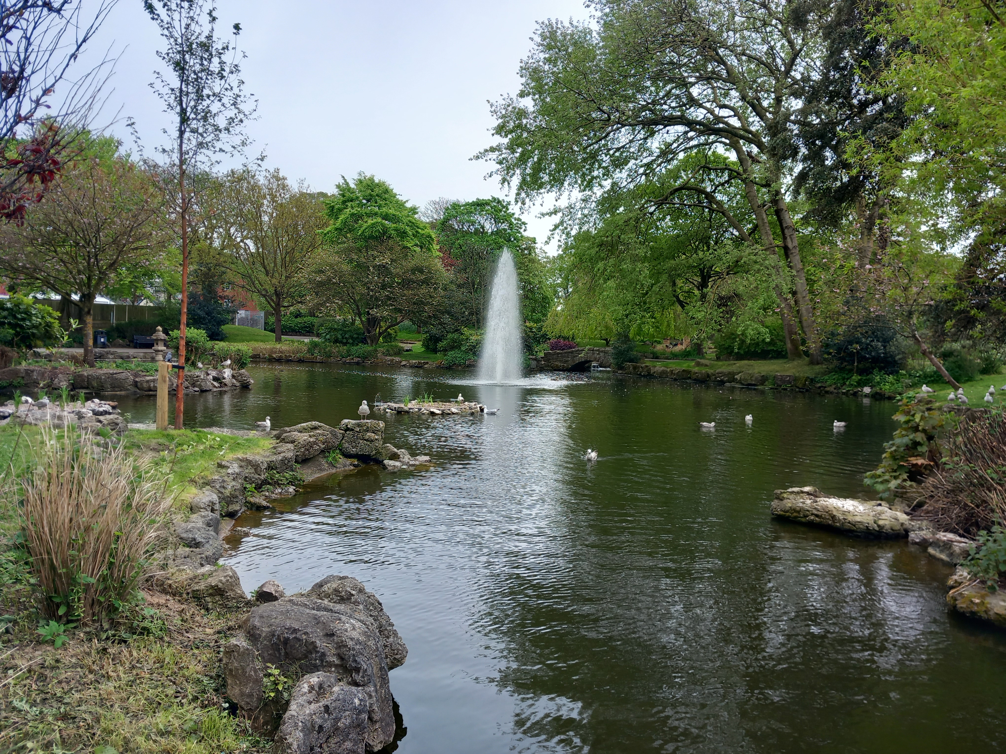 Many of the original features from Lord Ashton’s restoration are still in place. The Circular Garden and Rose Garden are both well tended. The painted metal rustic bridges still carry people over the lower paths. The lake has a working fountain fed by a cascade, the flow of which varies over the space of a few minutes. The war memorial is in excellent condition, and its intriguing sculptures can be inspected at close quarters. The Ashton Memorial remains well kept. In more recent years a Japanese style garden, complete with gravel and boulders, has been added. The replica Ashton Institute, known as the Pavilion, is open every day for food and continues to be very popular with visitors.