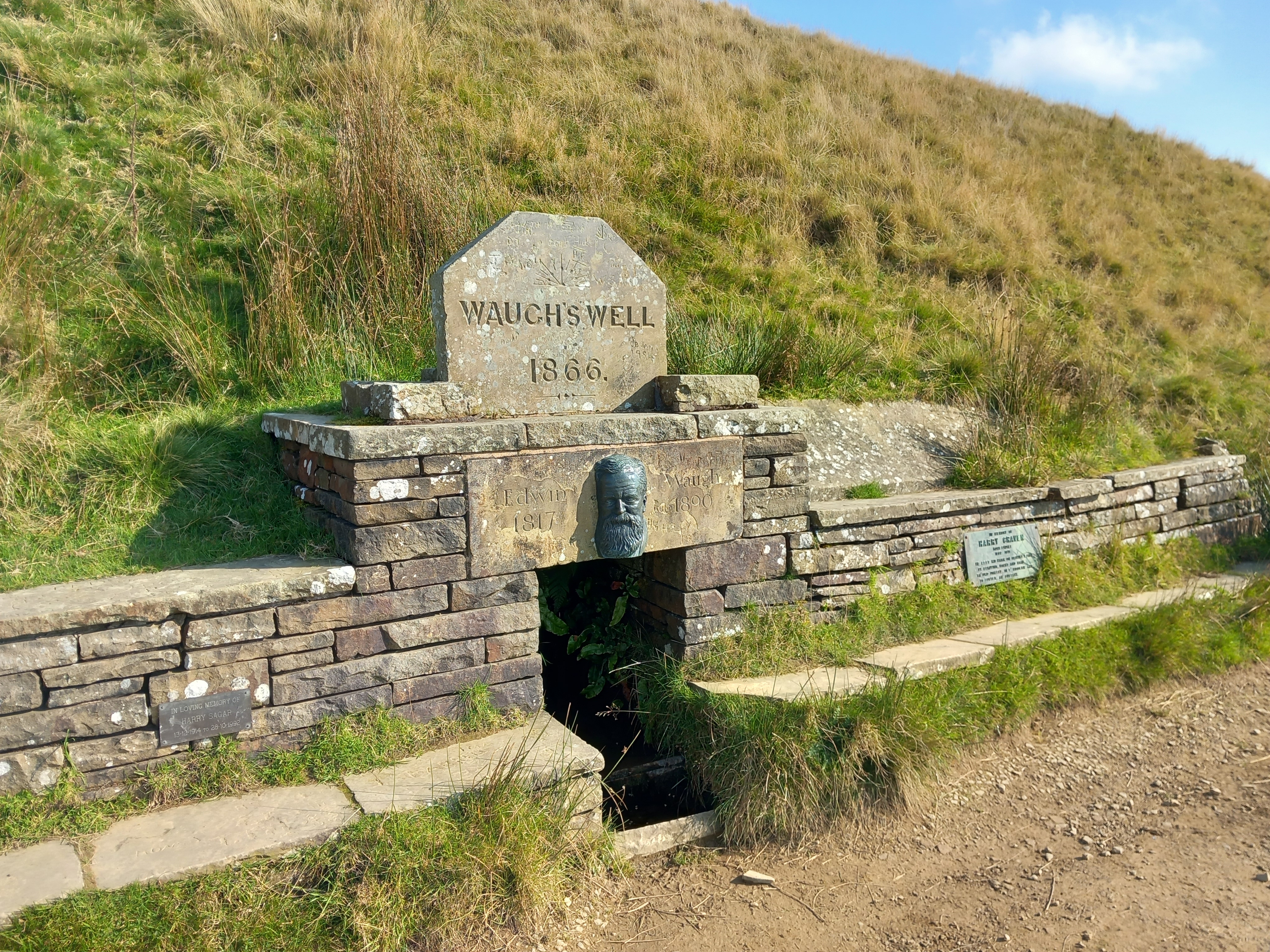 In 1938, the Edwin Waugh Society was created. Although membership lapsed during the war, it was reformed soon afterwards. In 1966, the society, together with the Lancashire Authors Association and Pennine Paths Protection Society planned a major restoration of the well. Mrs N. Lord of Newchurch created the bronze head of Waugh, and the well was remodelled by Mr Baldwin and Mr Sagar of Rawtenstall. On July 16th, a crowd of over 400 gathered for the rededication ceremony. Among them was famed author Jessica Lofthouse, chronicling the occasion in one of her many books that did so much to promote the historical heritage of Lancashire.