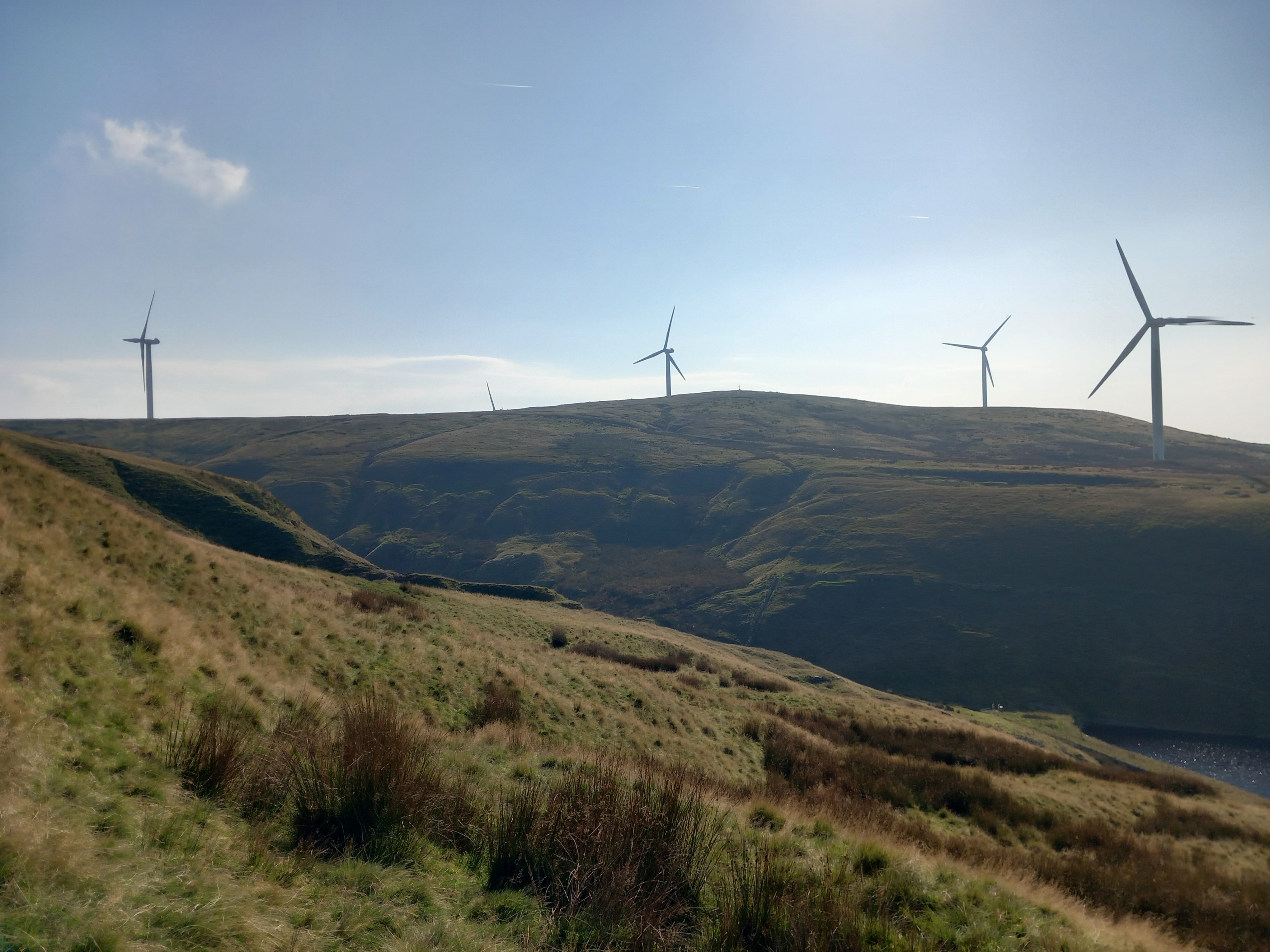 The biggest change since Waugh sat by the well is the addition of Scout Moor Windfarm, whose turbines are spread out before the well on Whittle Hill. The windfarm consists of 26 turbines, providing equivalent energy needs for 40,000 homes. There are currently proposals to add a further 21, which as they are larger and more efficient, would power 100,000 residences.