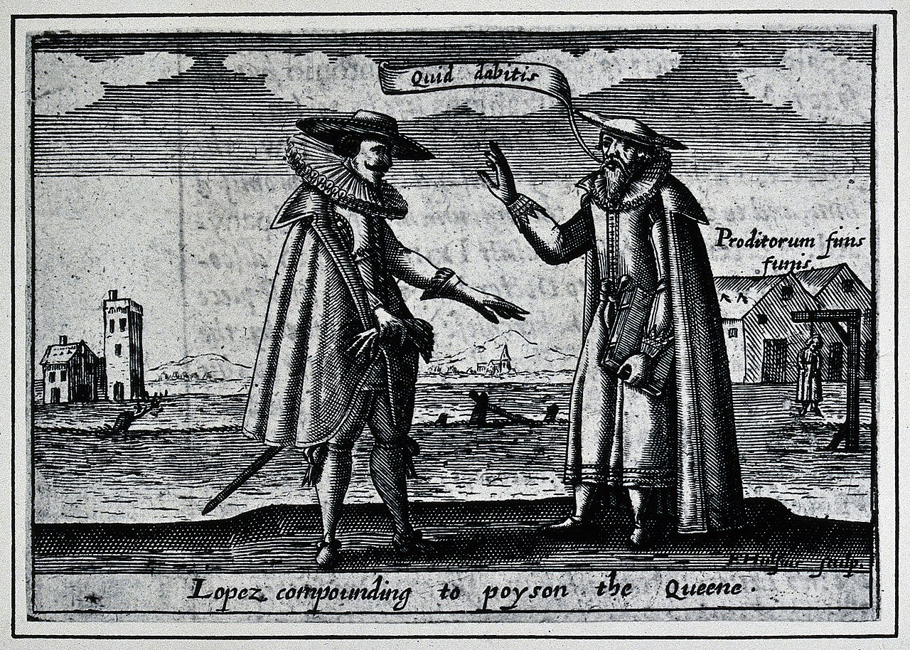 A strong possibility for the shift to a witchcraft diagnosis may have been an attempt to distance themselves from any accusation of poisoning their patient. The Earl of Essex had recently accused the queen’s physician, Spanish-born Roderigo Lopez, of trying to poison her. A show trial convened by the earl had ensued, and Lopez had been convicted and executed, despite being innocent. In the light of the paranoia surrounding the Lopez affair, the doctors were probably trying to shift any suspicion of poisoning away from themselves. They may have reasoned that the diagnosis of witchcraft and enchantment could in no way be blamed on them. It should be noted that our contemporary understanding of their treatments, while not having caused Ferdinando’s death, may well have hastened it.